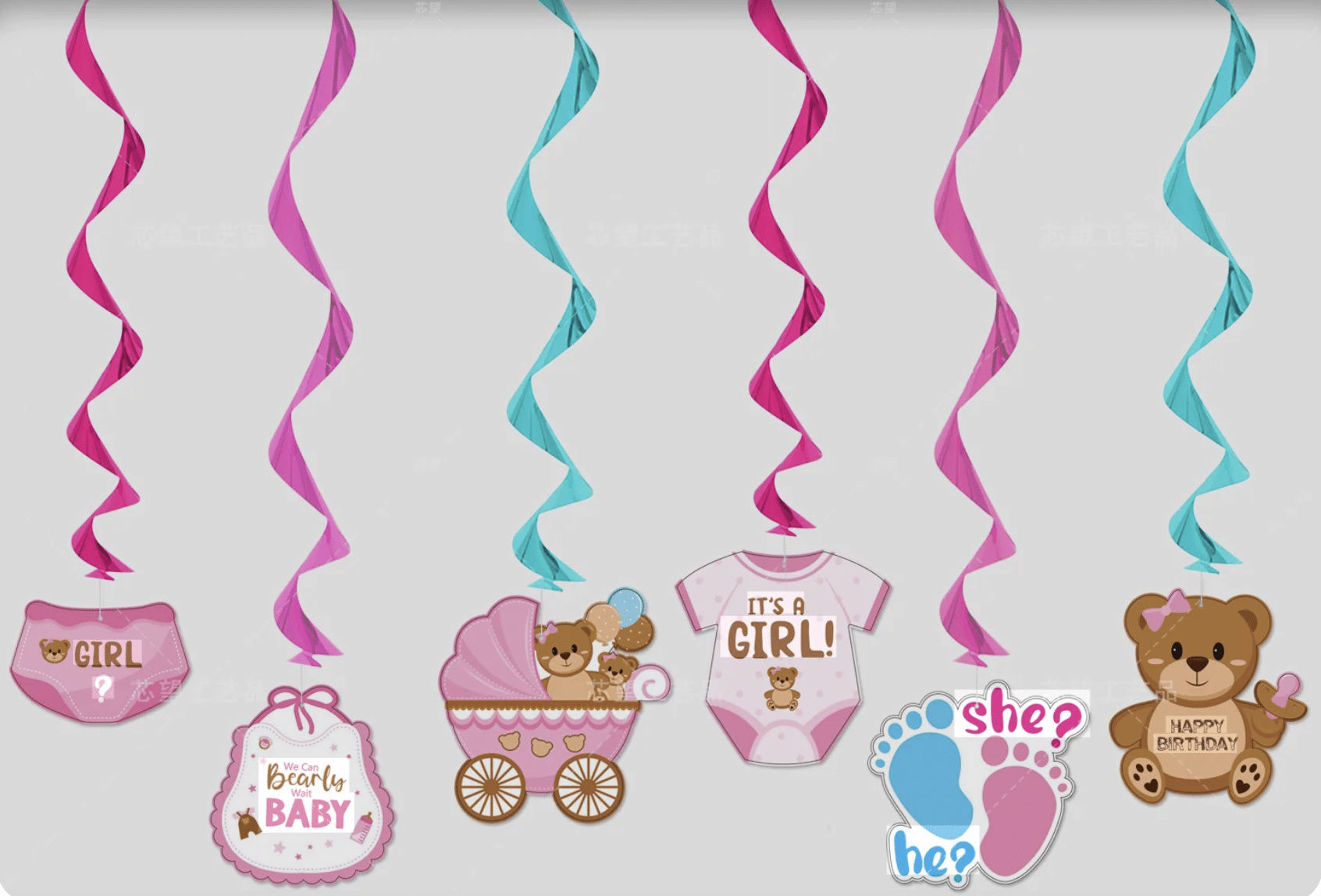 Създайте нежна и празнична атмосфера за бебешко парти, погача или baby shower с тази очарователна висяща спирална декорация в розова гама. 🌸✨ Подходяща за посрещане на бебе момиченце и специални семейни поводи.